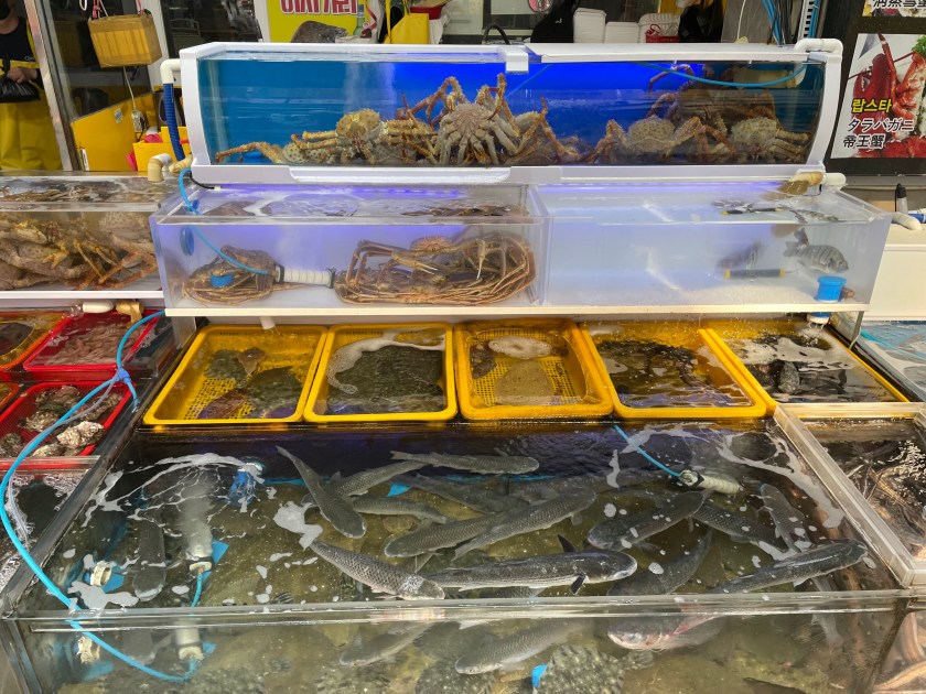 After long last, it was time for us to check into our hotel. You’d think that after 40ish hours of not seeing a bed, we’d be more than ready to hunker down. That may have been the case but as fate would have it, we passed a cat cafe on our way back and couldn’t resist checking it out. For those unfamiliar with the popular Asia attraction, it’s basically what it sounds like. You pay for a coffee or tea and enjoy it in the company of some pretty neat cats. My favorite was a hairless little freak who I was able to entice with the help of a frozen fish lollipop (yum!).